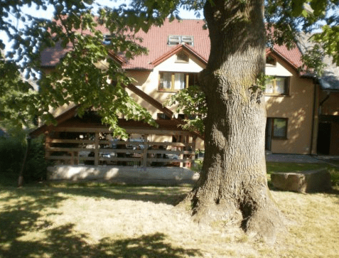 K dispozici je 8 pokojů se sociálním zařízením a 1 apartmán, společenská místnost s krbem, zahrada, hřiště a wi-fi.