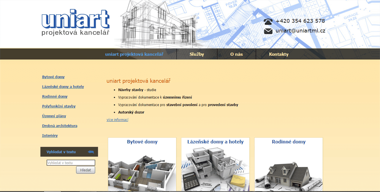 Projektová kancelář UNIART, sídlící v Mariánských Lázních, s dlouhodobými zkušenostmi nabízí profesionální služby v oblasti návrhů staveb, vypracování dokumentace pro stavební povolení, provedení stavby a k územnímu řízení. Dále také zajišťujeme autorský dozor.