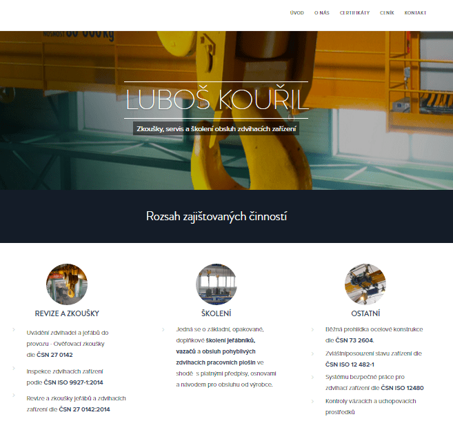 dovolte mi seznámit vás s mojí činností – Luboš Kouřil – zkoušky, servis a školení obsluh zdvihacích zařízení. V tomto oboru pracuji od roku 1983. V současné době se mnou trvale spolupracuje také můj syn Richard.