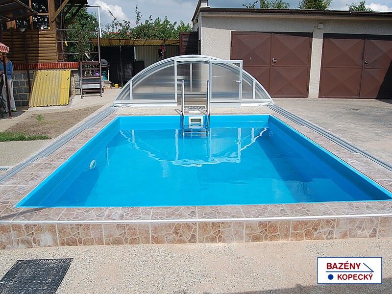 - fóliové bazény s plechovou nosnou stěnou (s tenkou fóliovou vložkou)