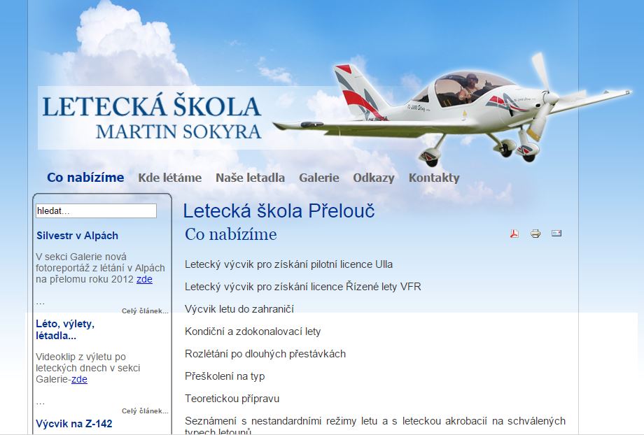 - Letecký výcvik pro získání licence Řízené lety VFR