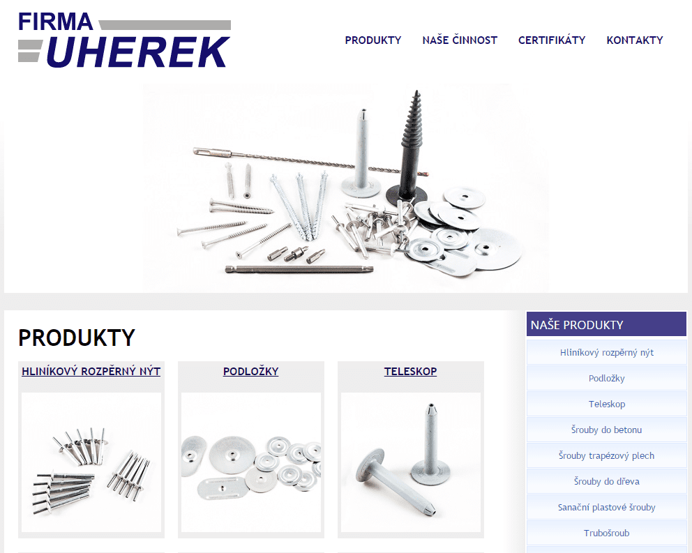 Firma UHEREK již od roku 1993 působí jako výrobce kotvicí techniky pro střešní a tepelné izolace. Tuto hlavní, nosnou část výroby, doplňuje obecným obráběním.
