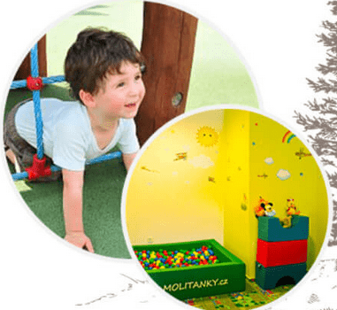 Rodiny s dětmi přivítáme s otevřenou náručí. K dispozici máme dětské hřiště, dětský koutek, dětská jídla. Zdarma zapůjčíme vybavení pro malé děti (postýlku, vaničku, židličku).