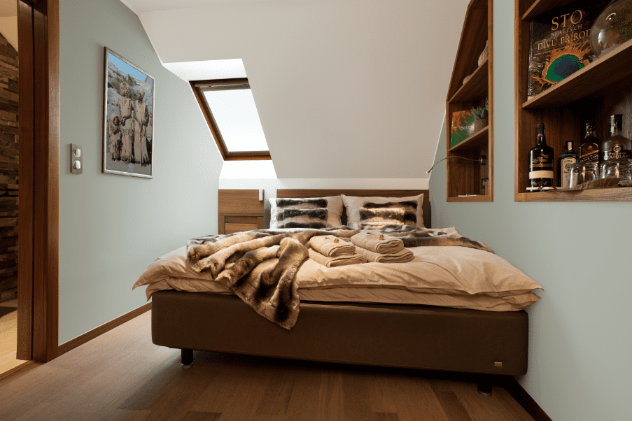 Horní část Ostrova jsme pojmenovali Kolibřík. Tento podkrovní pokoj vás povznese na duchu, přiblíží ke hvězdám a umožní vám na chvíli se zastavit v letu. Můžete si jej pronajmout samostatně nebo společně s Hnízdem, pokud třeba přijedete s dětmi, přáteli, obchodním partnerem nebo rodiči, a přitom si chcete vychutnat svůj klid a soukromí.