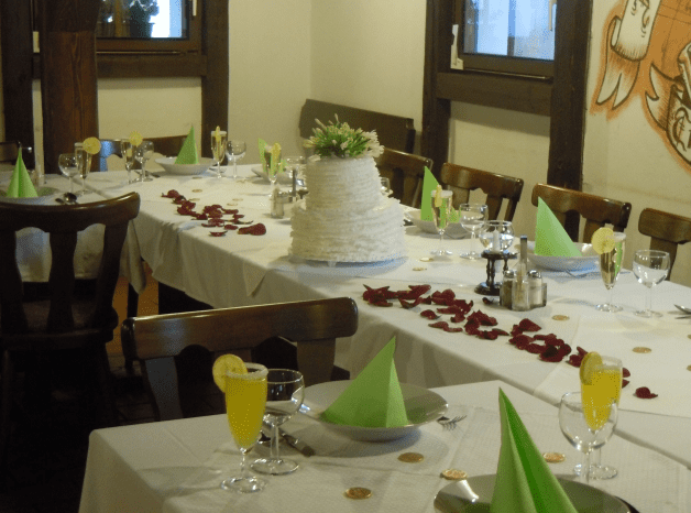 • široký sortiment jídel je zaměřen na zvěřinové speciality ze zvěřiny místních honiteb a staročeské pochoutky z čerstvých ryb třeboňských rybníků