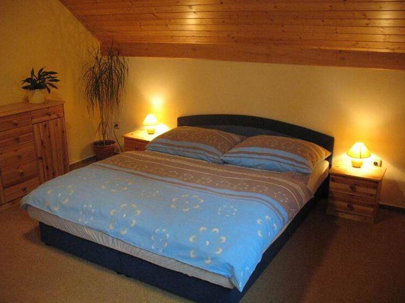 Prostor je rozdělen na velkou společenskou místnost s vybaveným kuchyňským koutem, posezením s velkoplošnou televizí, dále 2 oddělenými ložnicemi, každá s dvojlůžkem a lůžkem, půdní vestavbou s přístupem po dřevěném schodišti se spaním pro další 4 osoby.