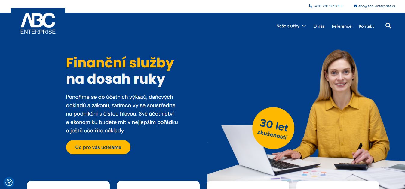 Společnost ABC.ENTERPRISE, a.s. poskytuje svým klientům již téměř 20 let komplexní služby v oblasti účetnictví, mzdového a personálního poradenství, daňových služeb a podnikatelsko-ekonomického poradenství.