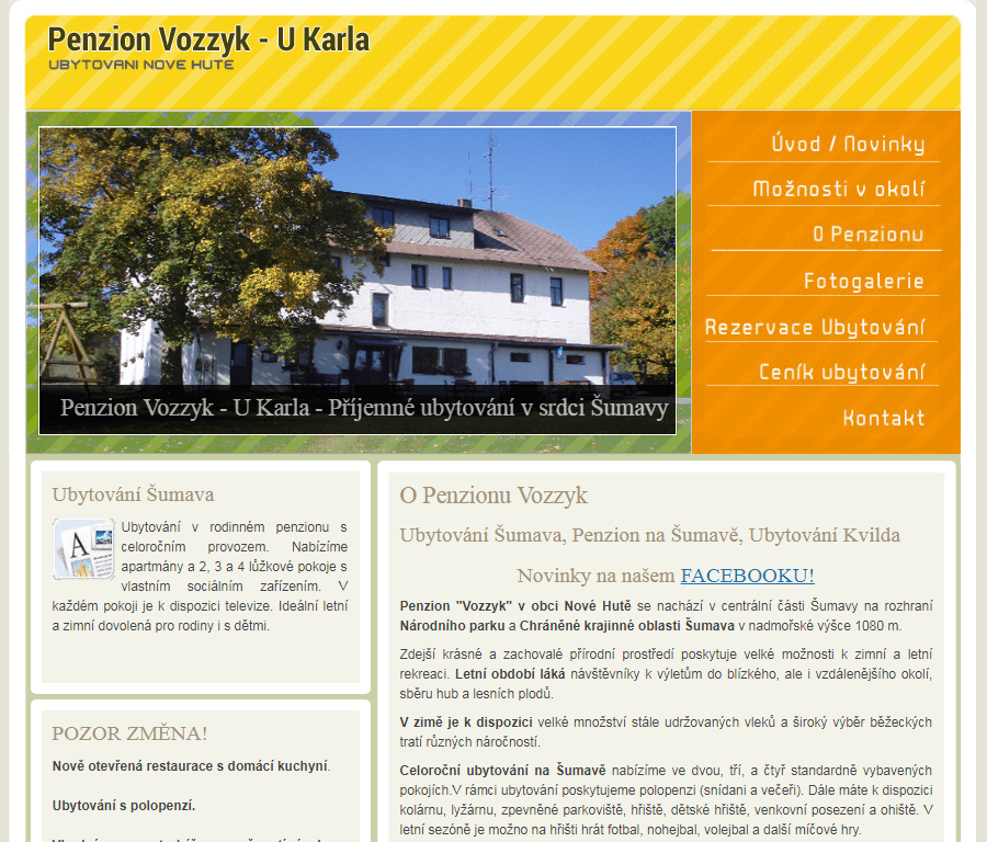 PENZION VOZZYK (bývalý penzion U Karla) v obci Nové Hutě se nachází v centrální části Šumavy na rozhraní Národního parku a Chráněné krajinné oblasti Šumava v nadmořské výšce 1080 m.