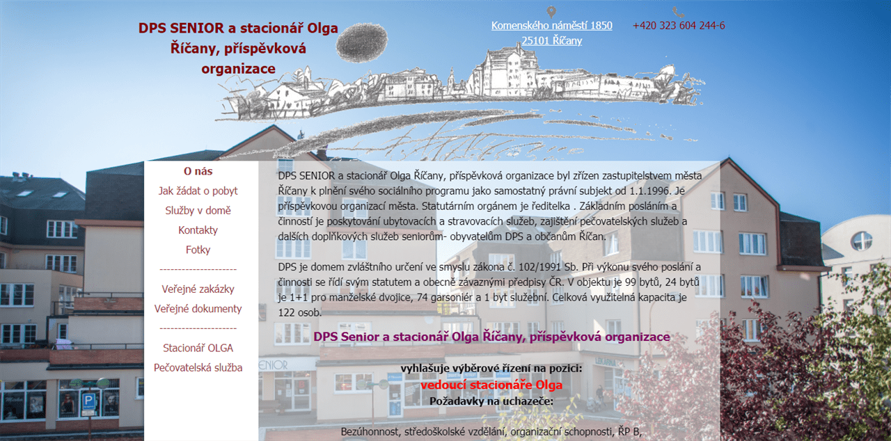 DPS SENIOR a stacionář Olga Říčany, příspěvková organizace byl zřízen zastupitelstvem města Říčany k plnění svého sociálního programu jako samostatný právní subjekt od 1.1.1996.