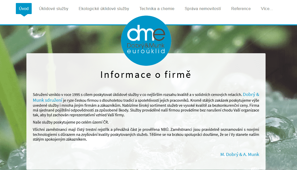 Dobrý & Munk sdružení je ryze českou firmou s dlouholetou tradicí a spolehlivostí jejich pracovníků.