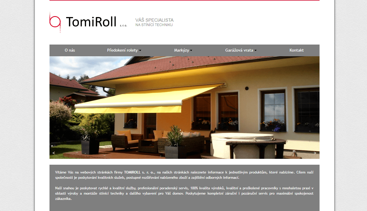 Naší snahou je poskytovat rychlé a kvalitní služby, profesionální poradenský servis, 100% kvalita výrobků, kvalitní a proškolené pracovníky s mnohaletou praxi v oblasti výroby a montáže stínící techniky a dalšího vybavení pro Váš domov. Poskytujeme kompletní záruční i pozáruční servis pro maximální spokojenost zákazníka.