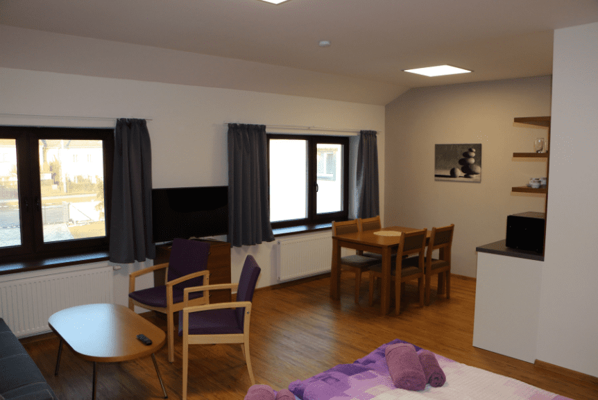 Ubytování pro 68 hostů v 23 dvou a více lůžkových pokojích, 5 apartmánech