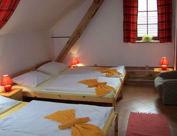 Ubytování ve standardně zařízených pokojích s vlastní koupelnou a bezplatným wi-fi.