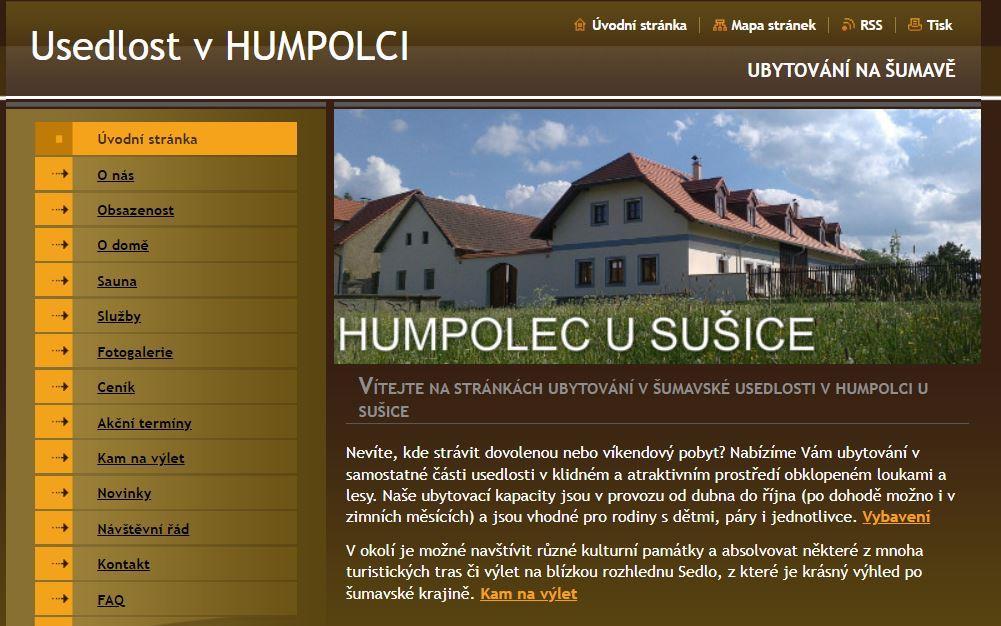 Naše usedlost se nachází v šumavské vísce jménem Humpolec, která se nalézá v nadmořské výšce cca 770 metrů nad mořem. Humpolec je seskupením selských gruntů tvořících útulnou náves. Té vévodí nově opravená kaple svatého Vendelína, od které je překrásný výhled na královský hrad Kašperk. Uprostřed návsi stojí mohutná kamenná kašna.